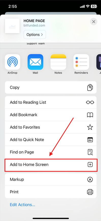 Scroll down and select **“Add to Home Screen”**