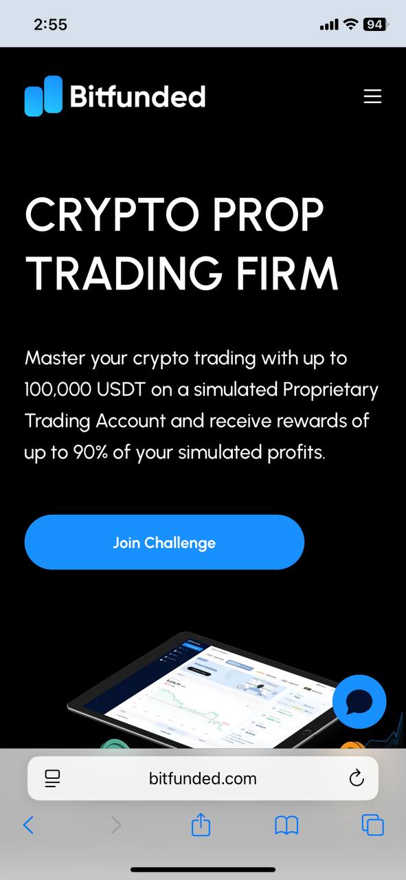 Open **Safari** and go to [www.bitfunded.com](https://www.bitfunded.com)